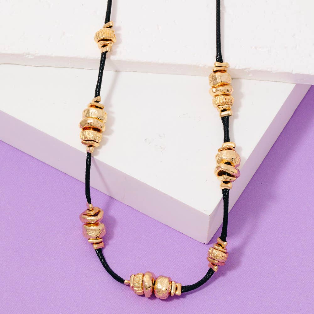 Metallic Station Beads Cord Necklace